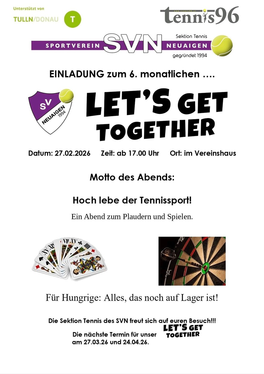 Der SV Neuaigen Veranstalten am 27.02.2026 den 6. Neuaigner Stammtisch "LET'S GET TOGETHER".